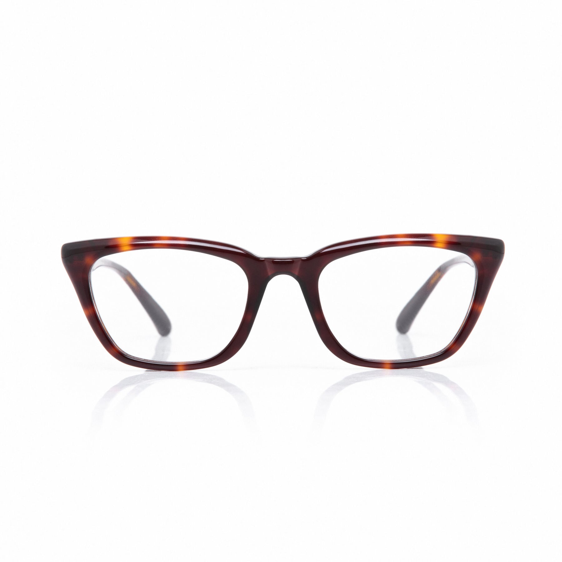 Marco de receta fabricado en acetato con frente y patillas carey brillo. Lentilla de presentación transparente.