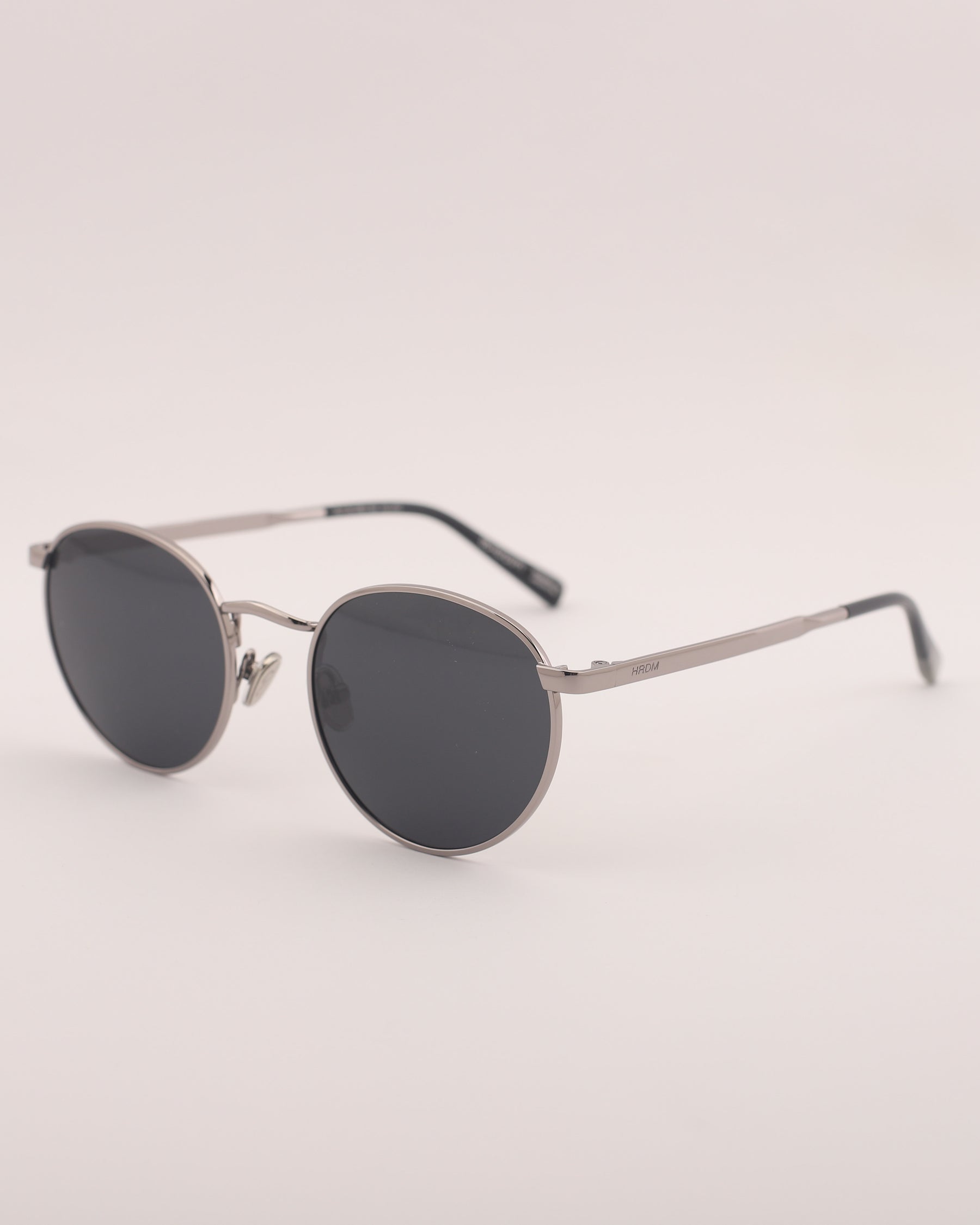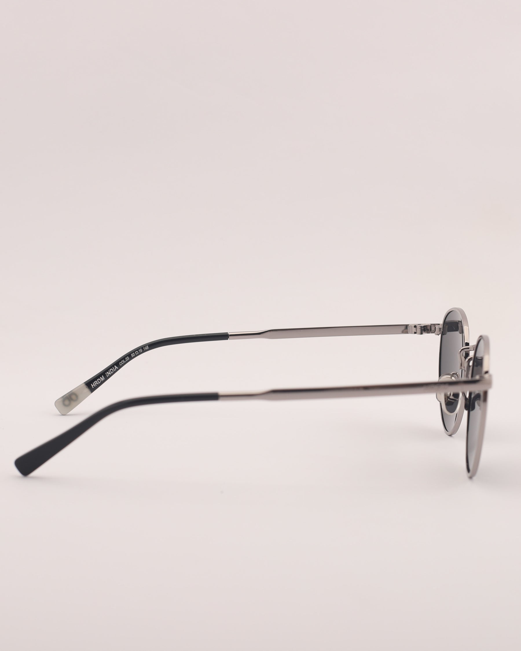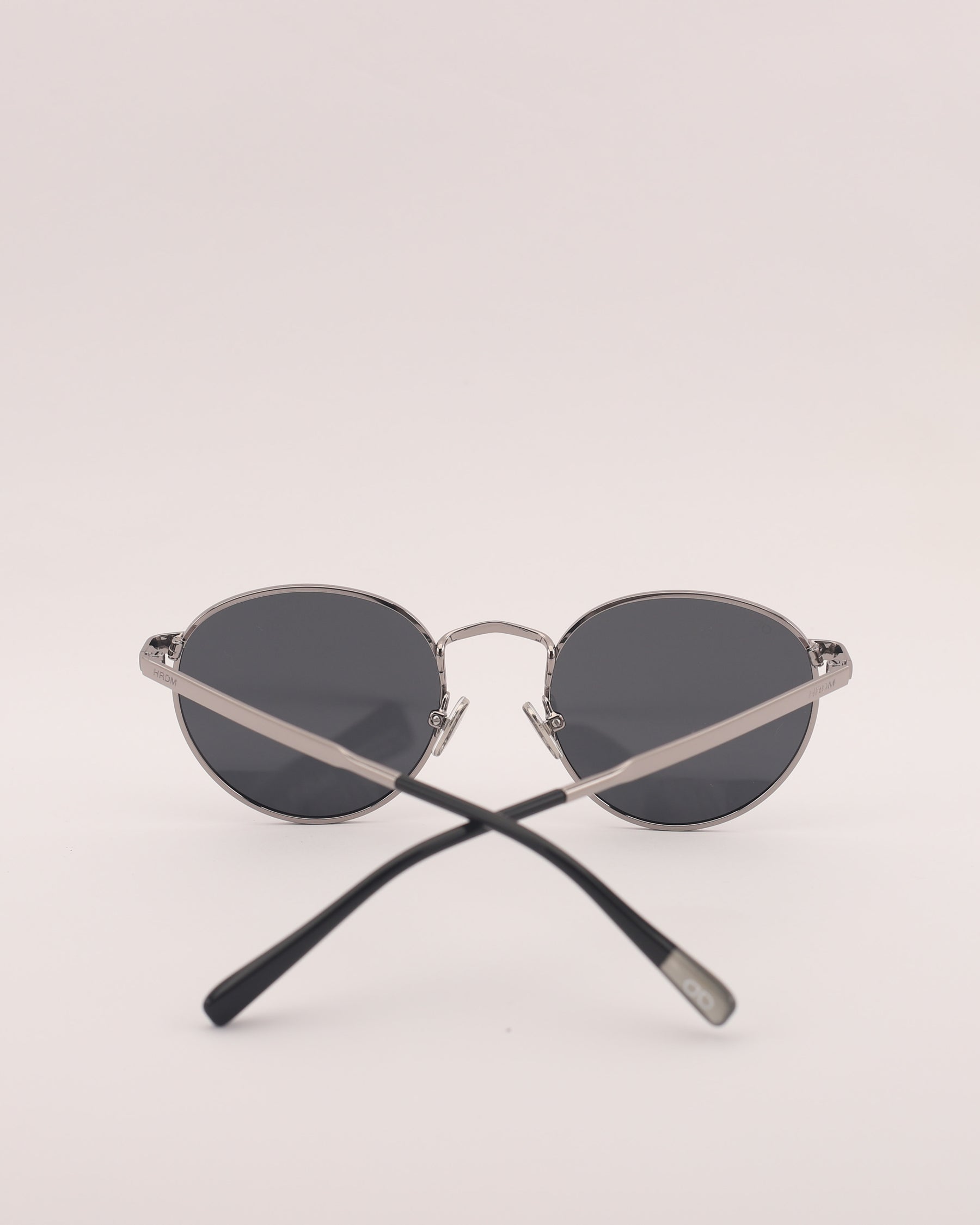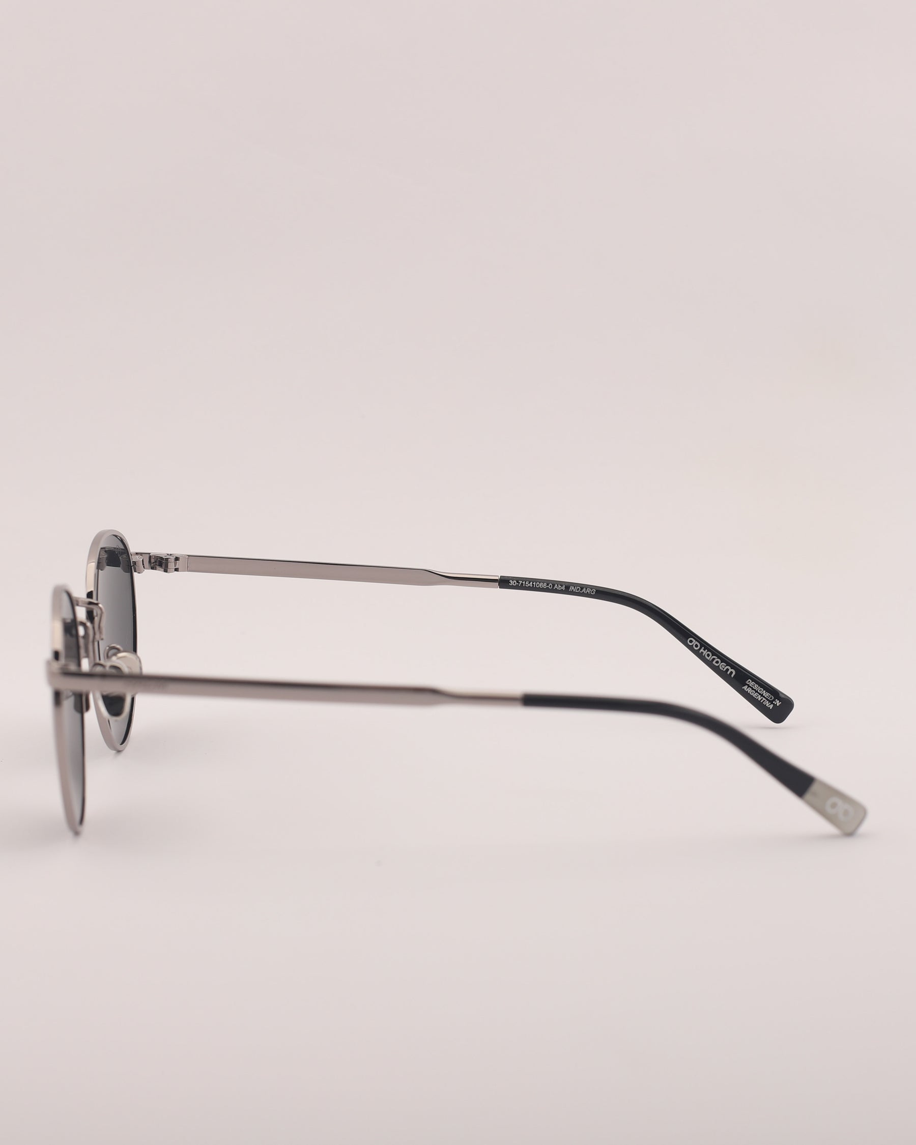 Lentes de sol fabricados en metal con frente y patilla gun metal brillo. Cristal gris compacto con protección UV 400 y polarizado.
